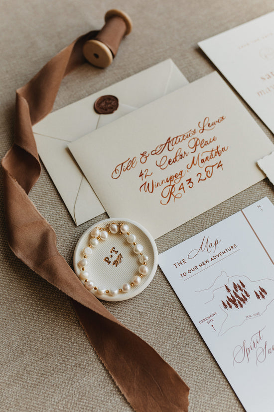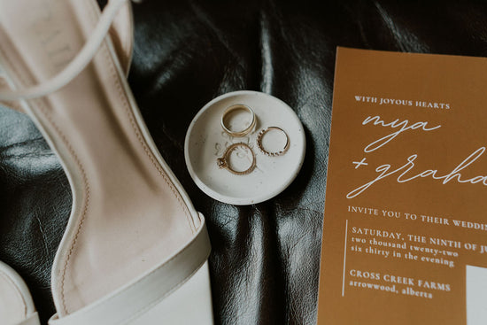 Our pieces have found homes around Canada and the United States. From friends designing custom ring dishes to gift their friends for engagements and weddings, to grooms shopping for their brides, to photographers shopping for client gifts and special props for their wedding flatlays and styling shoots, to special additions to Christmas trees, our products are far and wide. Our products have even been featured in a number of photoshoots and a wedding magazine! We are so humbled and grateful that our creations are cherished as part of your most special moments.